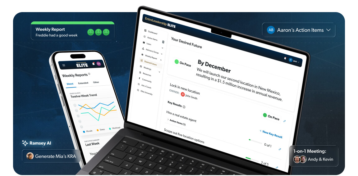Business is freaking hard. Anyone who tells you it’s not has never had to make payroll. I’m Dave Ramsey, and our proven EntreLeadership System was built over the last 30 years while growing Ramsey Solutions from a card table in my living room into a $300 million company. And now you can follow the same stage-by-stage approach to drive your business forward and create unstoppable momentum.